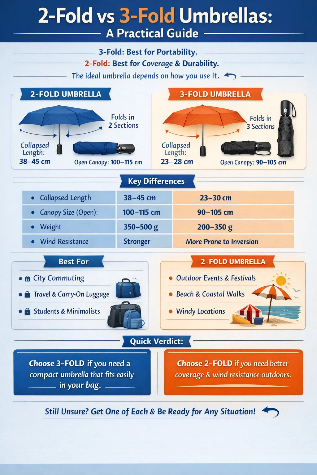 انتخاب بین چتر 2 و 3 تایی واقعاً یک سؤال مناسب سبک زندگی است، نه یک سؤال با کیفیت. هیچ یک از نظر عینی در همه موقعیت ها برتر نیستند. در اینجا واضح ترین خلاصه ممکن است:
