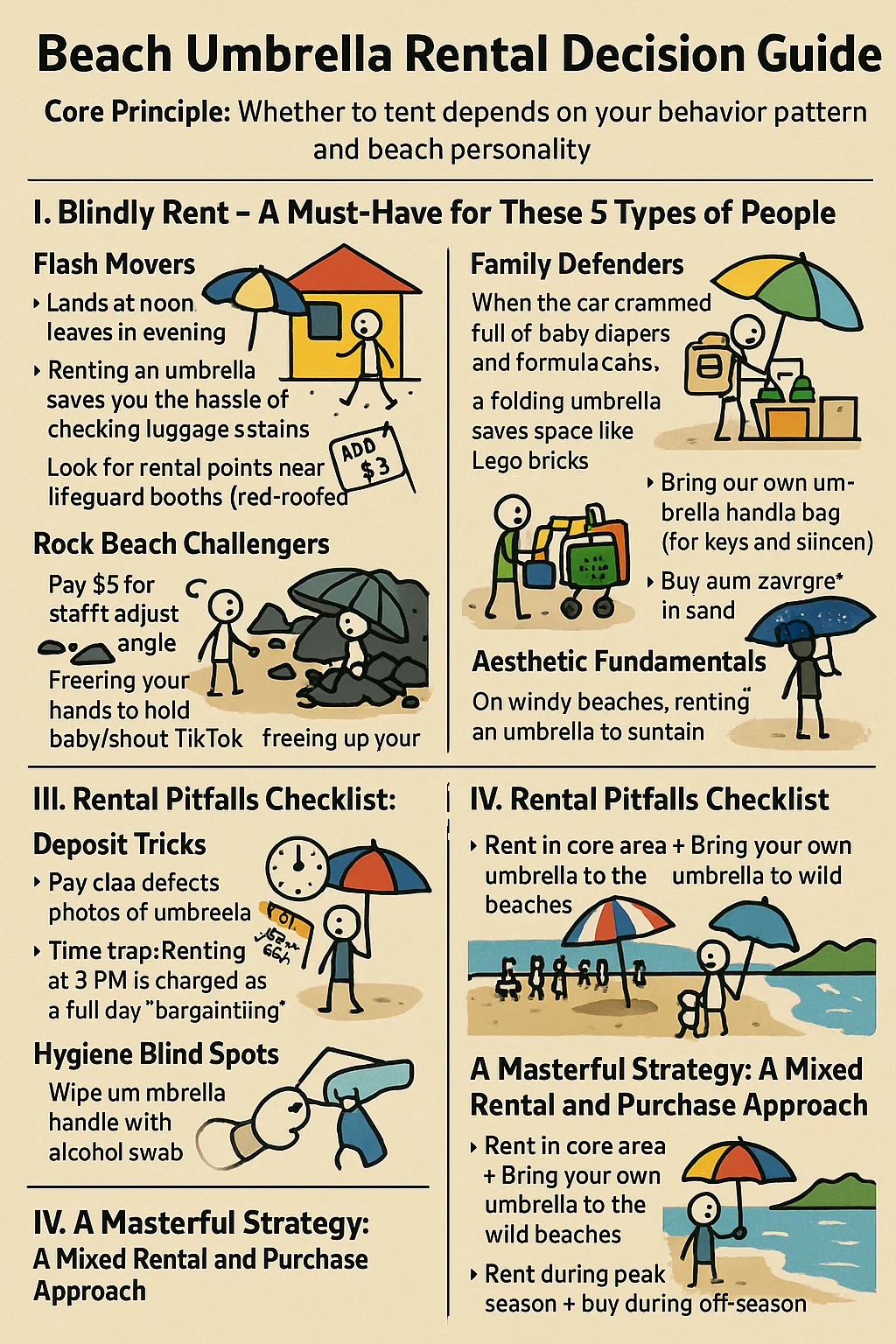 تله زمان: اجاره در ساعت 3 بعد از ظهر به عنوان یک روز کامل محاسبه می شود → تاکتیک های چانه زنی: "نصف قیمت برای چتر غروب آفتاب؟"