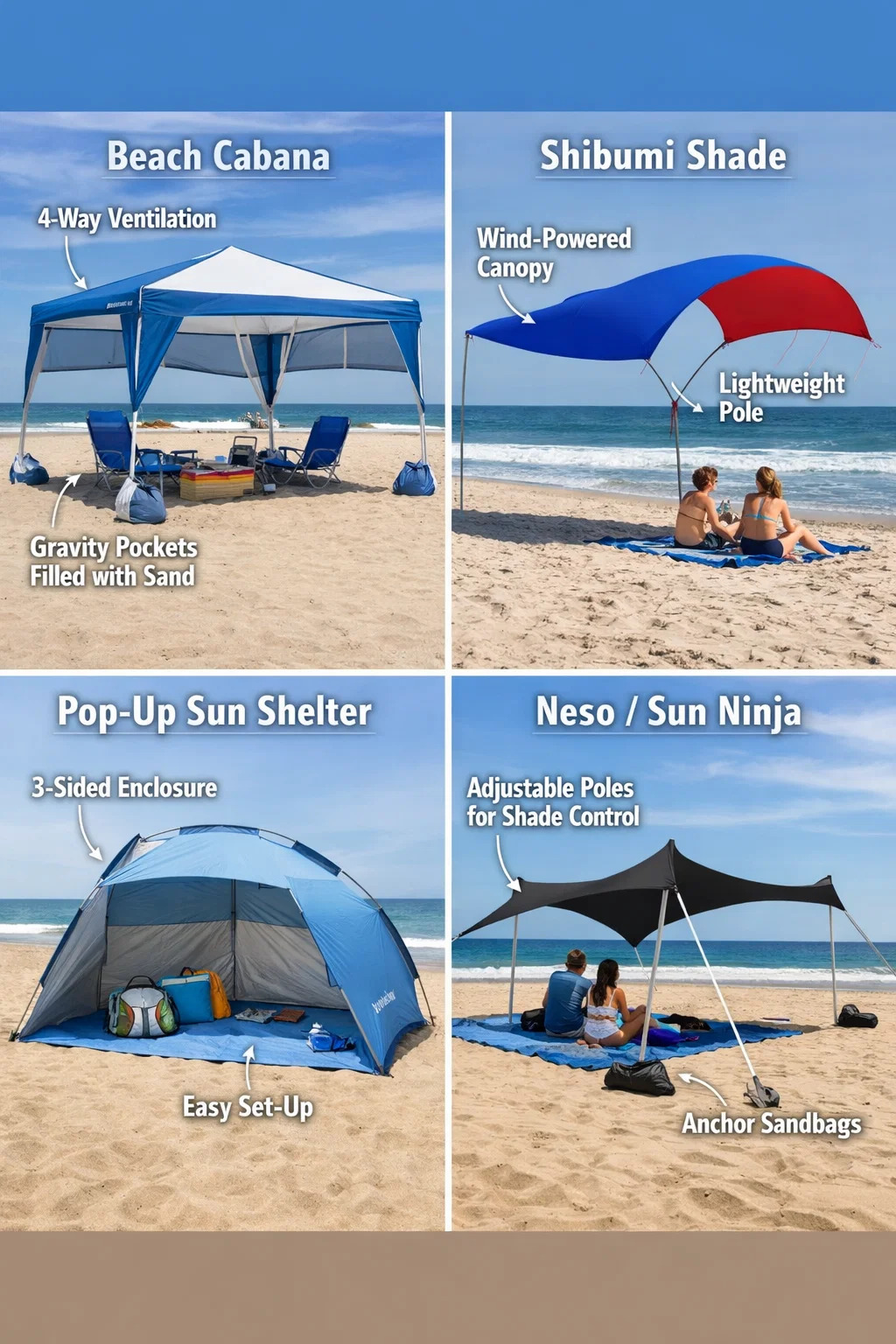در حالی که چترهای ساحلی کلاسیک هستند، اگر به دنبال تجربه ای پایدارتر، جادارتر یا مدرن تر از محافظت در برابر آفتاب هستید، گزینه های زیر از بسیاری جهات محافظت برتر را ارائه می دهند: