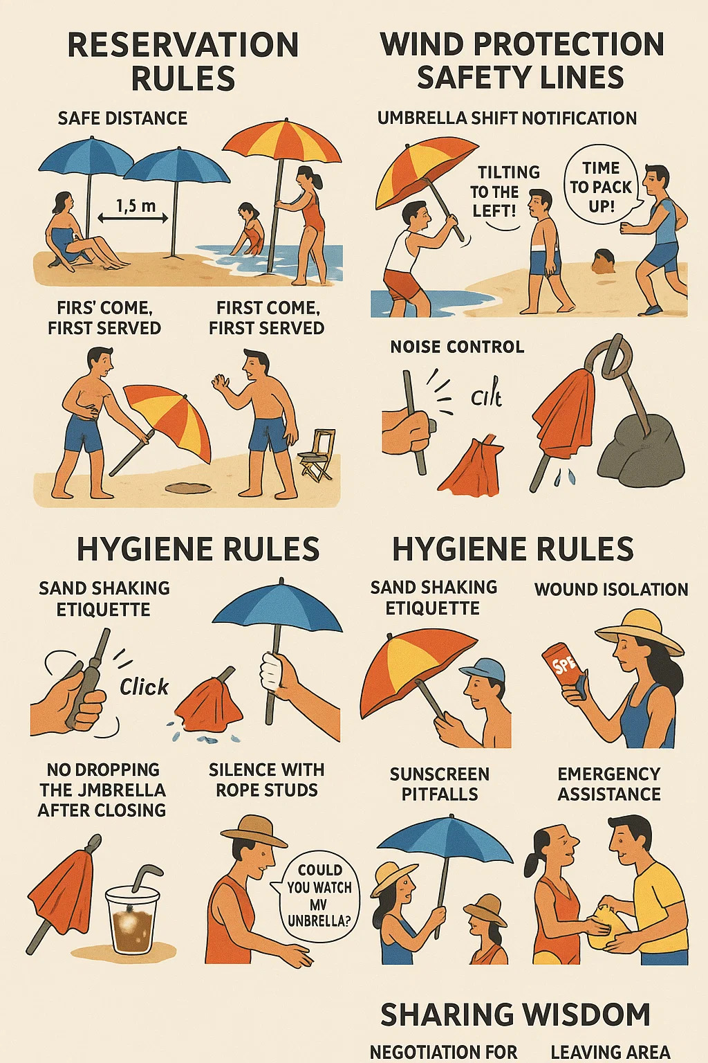 در اینجا برخی از قوانین ناگفته رایج برای استفاده آورده شده است چترهای ساحلی :