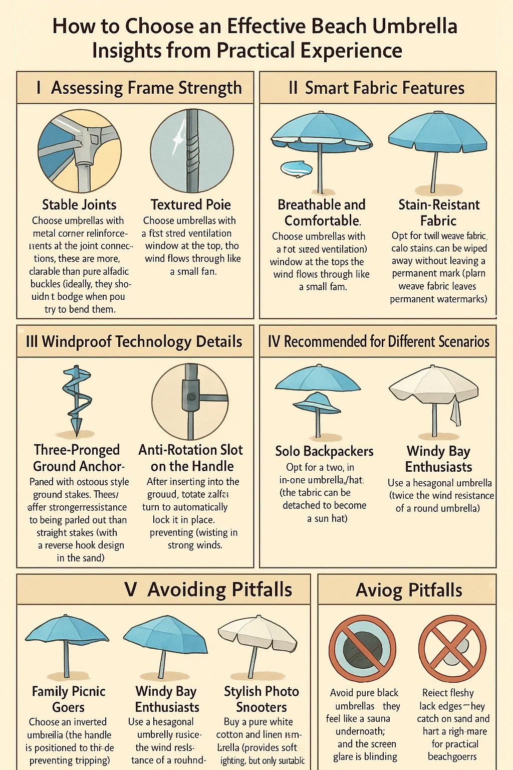 در اینجا نکات کلیدی برای انتخاب یک واقعا موثر است چتر ساحل ، با تجربه عملی توضیح داده شده است: